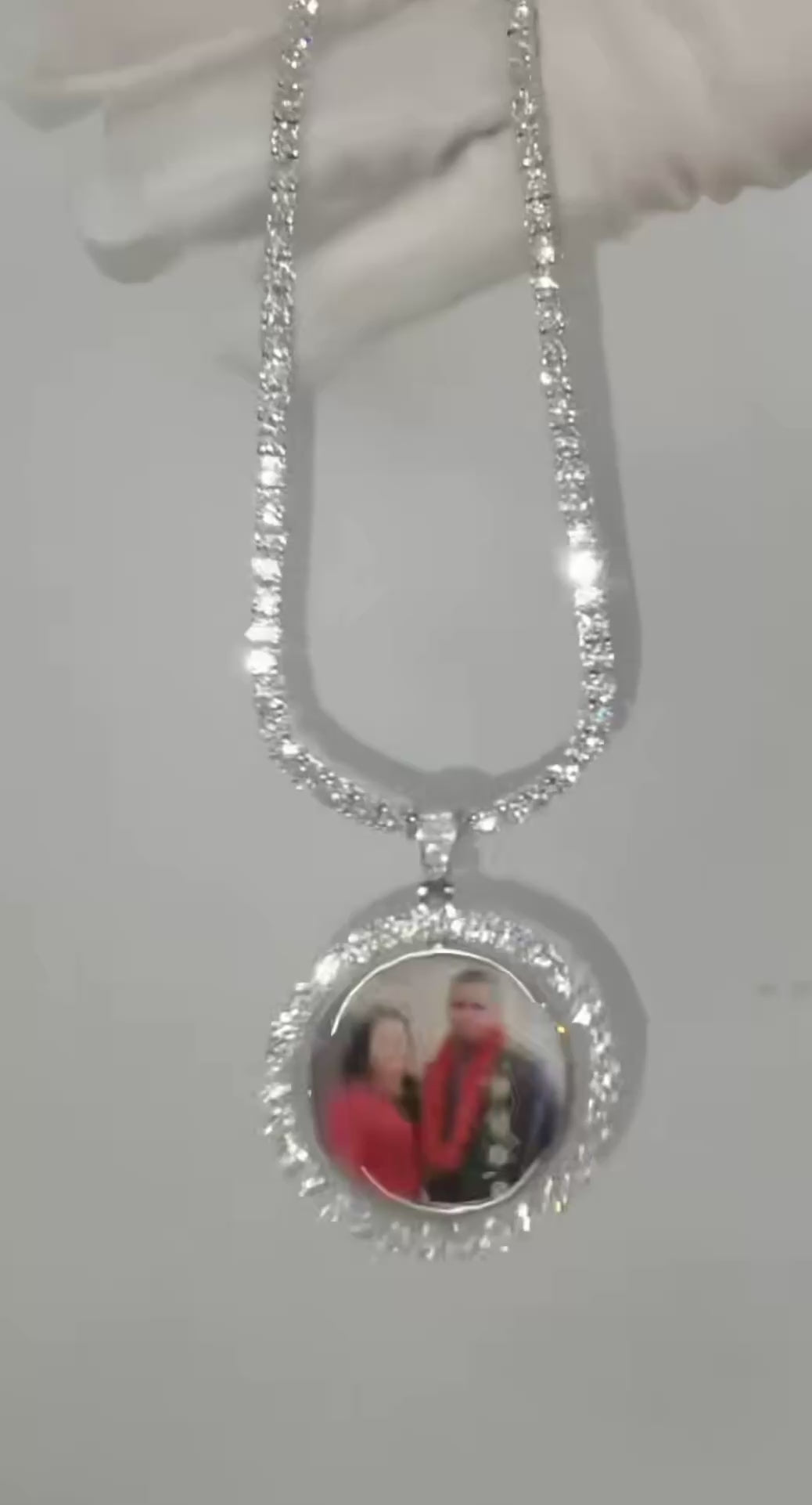 Fully iced out with VVS stones and built for attention, this one stands out different than your standard photo pendant.